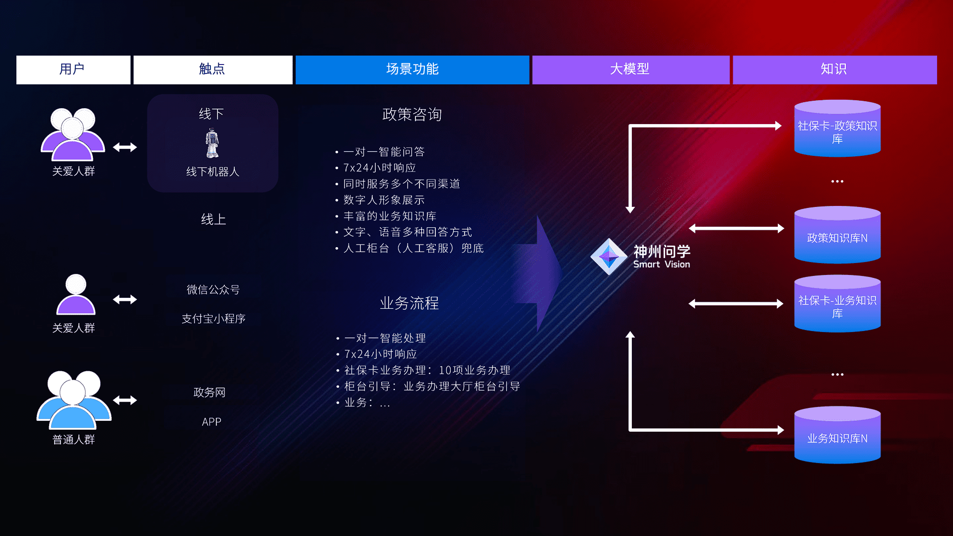 在服务大厅部署客服机器人,,在线上应用和小程序配置客服数字人,,724小时为群众解答常规问题,,,客服机器人无法处理的,,,转现场人工处理。。